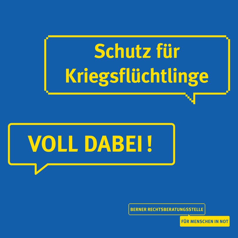Unter dem Titel voll dabei setzt sich die Berner Rechtsberatungsstelle für Menschen in Not mit verschiedenen Projekten dafür ein, dass ein neuer Diskurs zum Thema Flucht, Asylverfahren und Migration initiiert und gefördert wird. Er soll die Suche nach zukunftsfähigen Lösungen ermöglichen, die ein gleichberechtigtes Zusammenleben in einer freien und demokratischen Gesellschaft sichern.