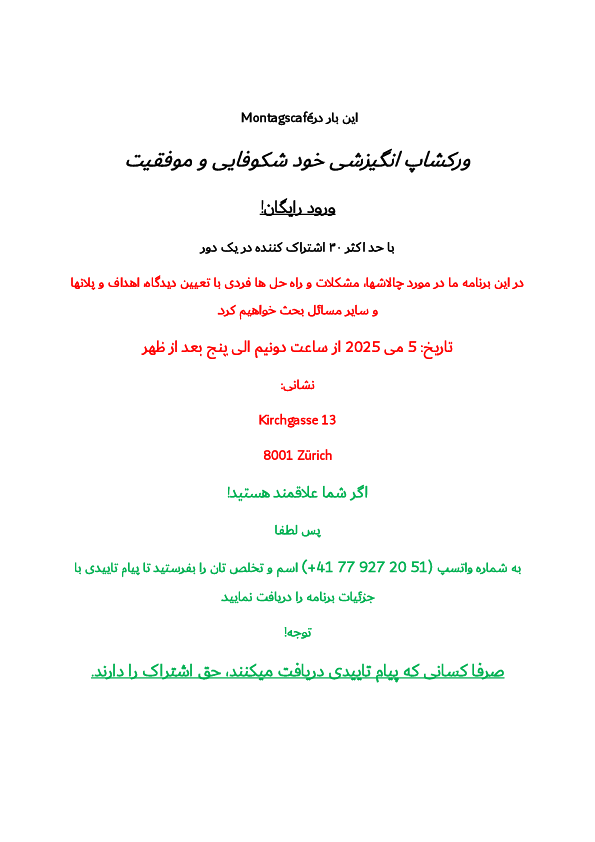 Wichtig: Der Workshop wird auf Persisch (Dari) durchgeführt und findet imBreitingersaal im 1. Stock statt – nicht in der Kapelle!