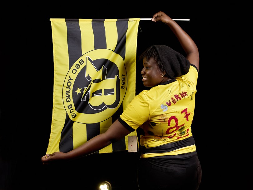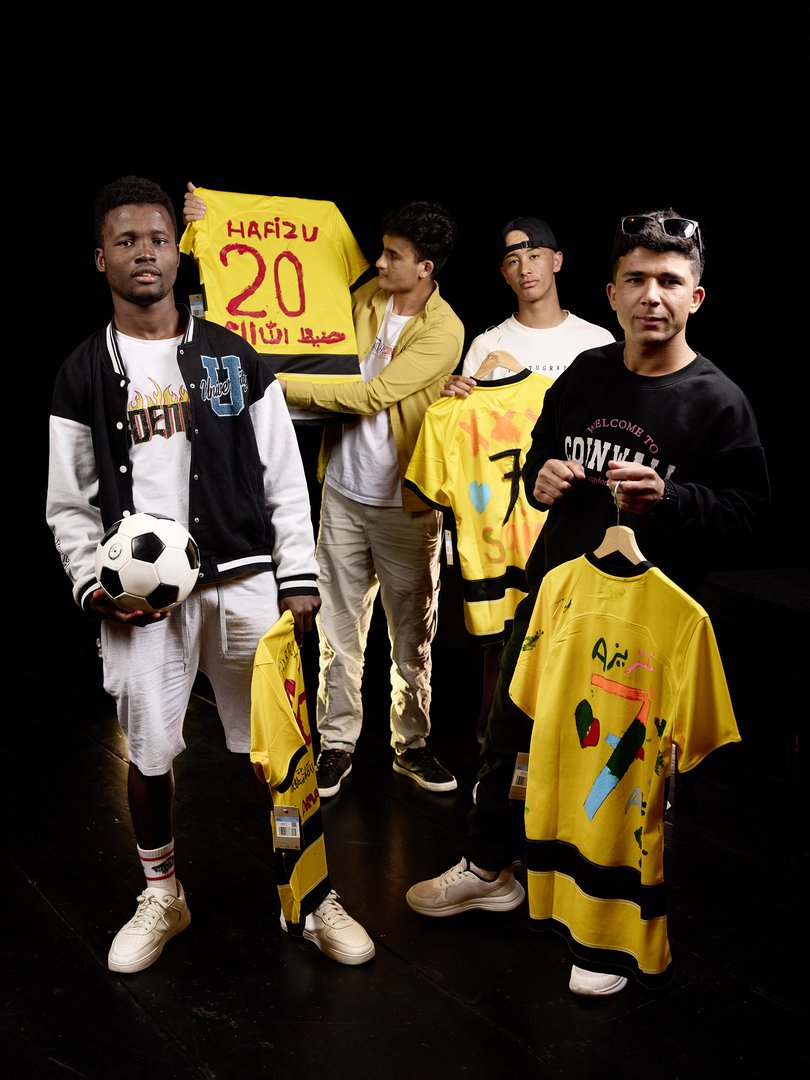 Den Start macht «YB Art». YB, das ist Marco Wölfli aus Grenchen oder Stephan Chapuisat aus Lausanne. Oder Guillaume Hoarau aus Saint-Louis, La Réunion, Courtney Strode aus San Diego, USA, Mohamed Ali Camara aus Kérouané, Guinea. «YB Art» ist Yegane, sind Mamadou, Bellevie, Kilian, Hafizullah, Mordem, Halimo, Lea und Jason. Ist die Freude aller, die für diese Ausstellung ein Shirt kreiert haben. Ist unsere Neugier beim Betrachten der Werke.