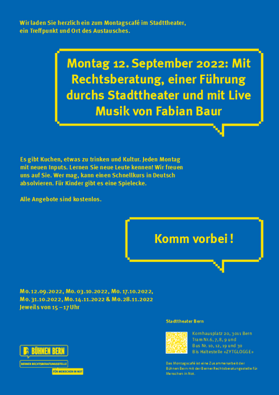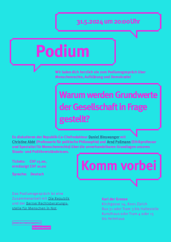 Berner Rechtsberatungsstelle für Menschen in Not in Kooperation mit REPUBLIK und Kulturhaus Helferei