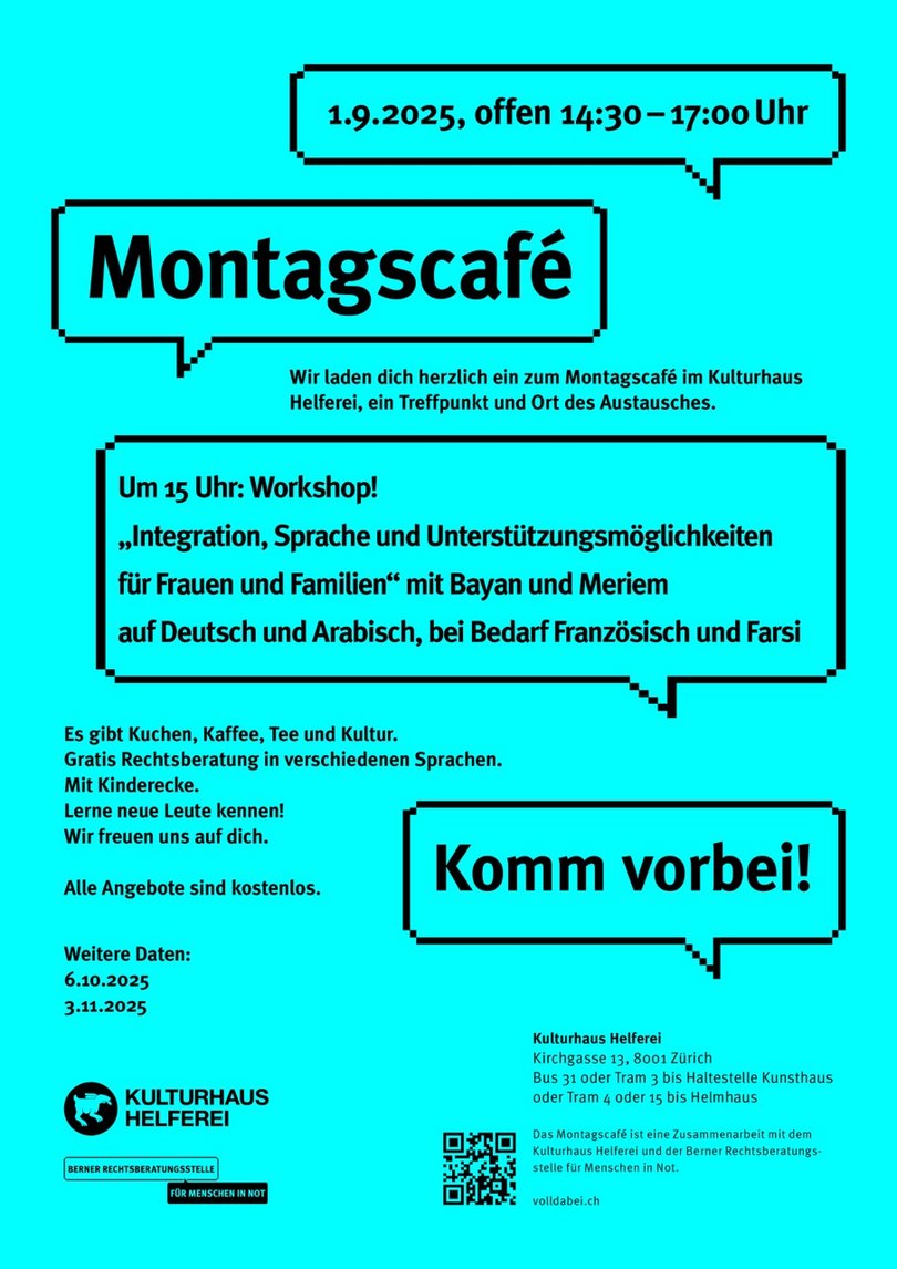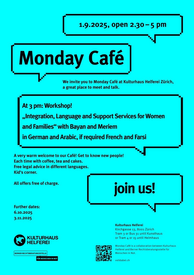 Montagscafé Zürich 1.9.2025 – Workshop zum Thema « Integration, Sprache und Unterstützungsmöglichkeiten für Frauen und Familien »